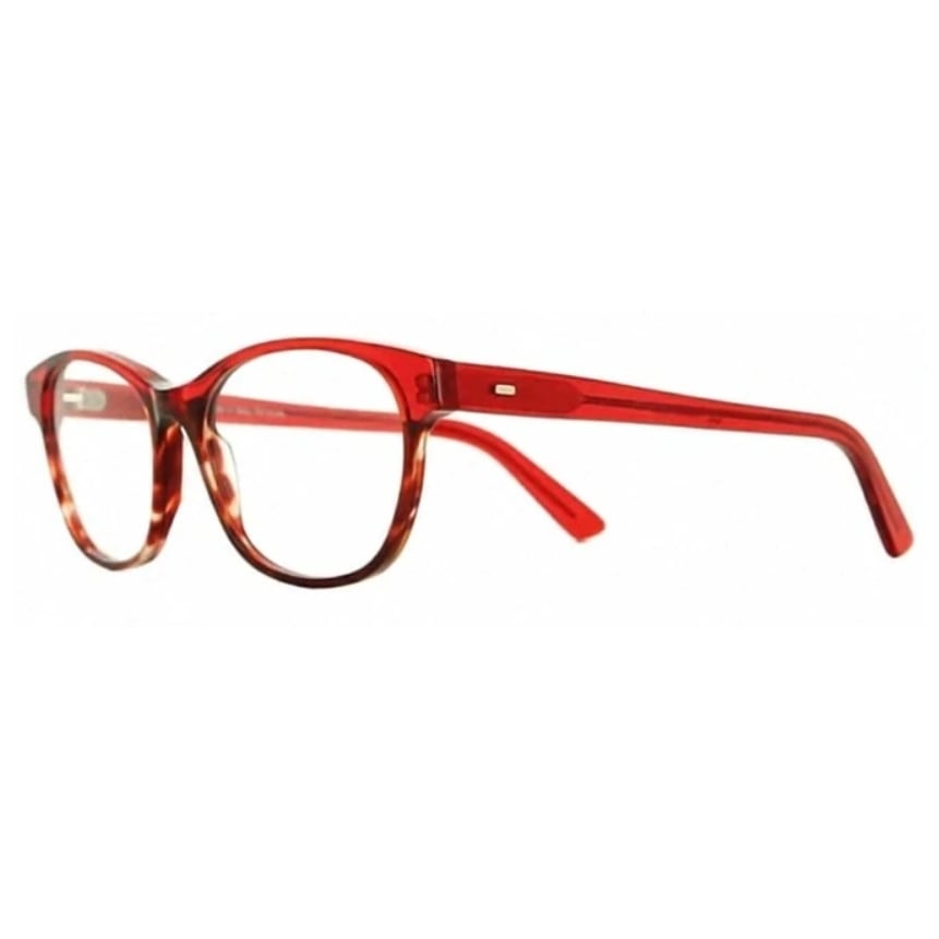 艶やかなクリアレッドが目を引くアセテート製のメガネフレーム。