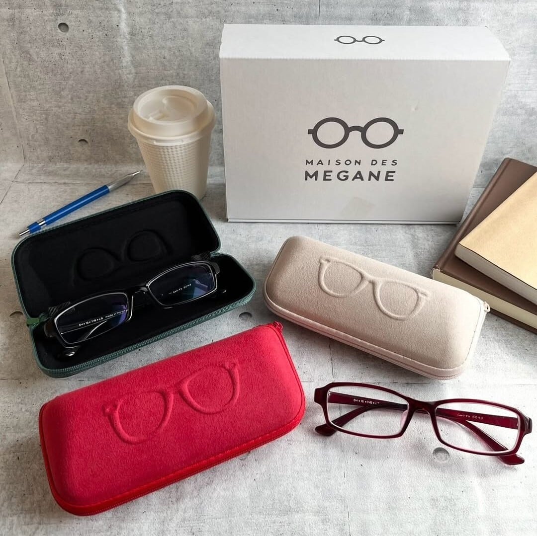 ケース表面にあしらったメガネモチーフのエンボス加工が、シンプルながらも遊び心をプラス。